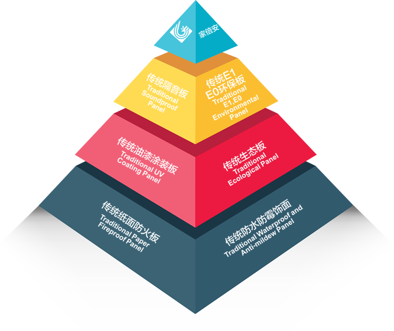 • “家倍安”使用高阻隔金屬鋁箔和高滲、超耐磨納米材料,經(jīng)過(guò)高溫高壓獨(dú)特的工藝方法處理,飾面木質(zhì)纖維結(jié)構(gòu)更加縝密,隔音、降噪,導(dǎo)熱系數(shù)低,防火等級(jí)高,達(dá)到國(guó)家防火材料防火標(biāo)準(zhǔn)A2級(jí)。